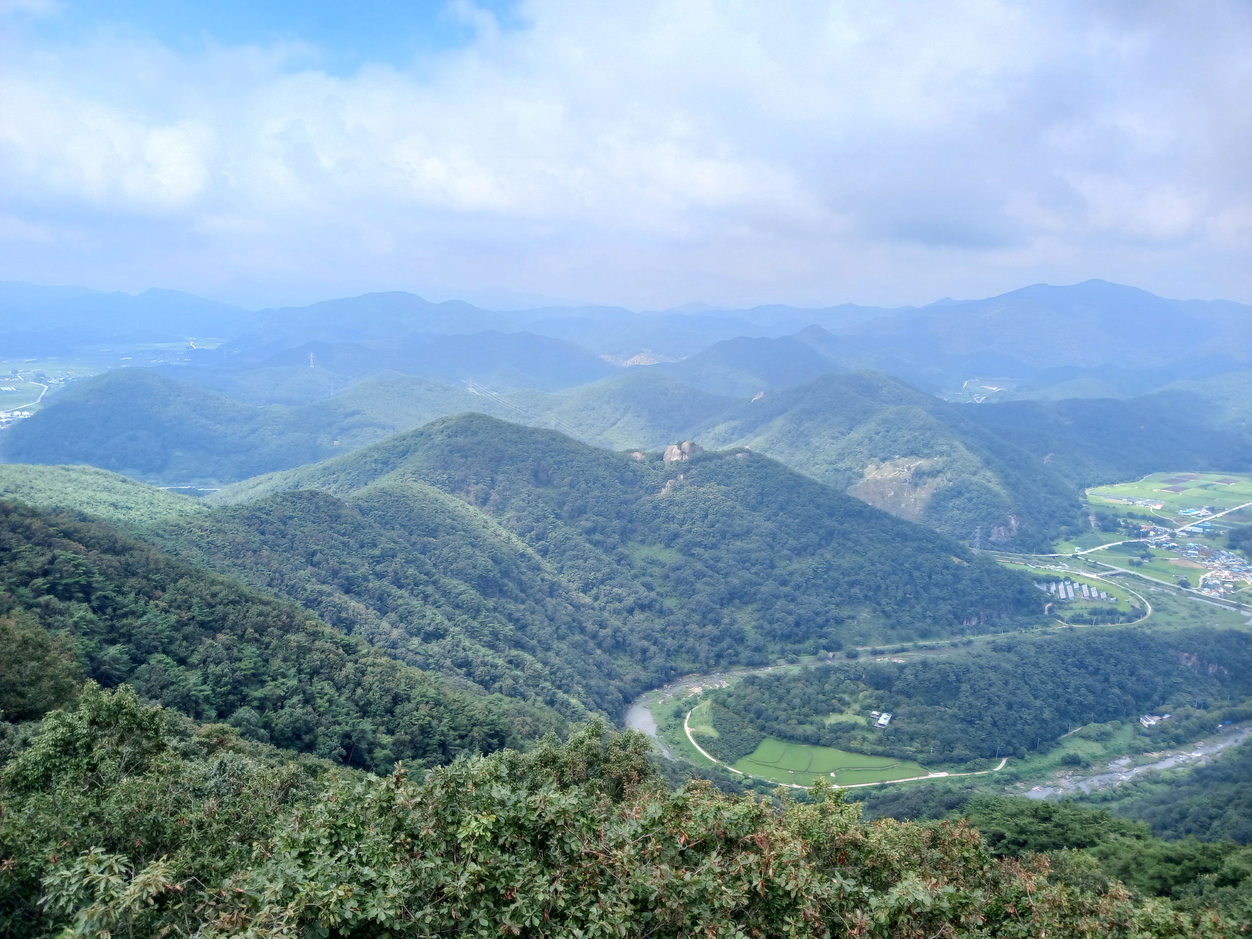 ▶우리나라에서는 강이 빚은 지형에서 흔히 한반도 모양을 연상하는데 감입곡류이기 때문이 아닐까? 여기 순창 무직산이 그렇다. 감입곡류는 하천이 산지나 구릉에서 구불구불한 골짜기 안을 흐르는 것을 뜻한다.