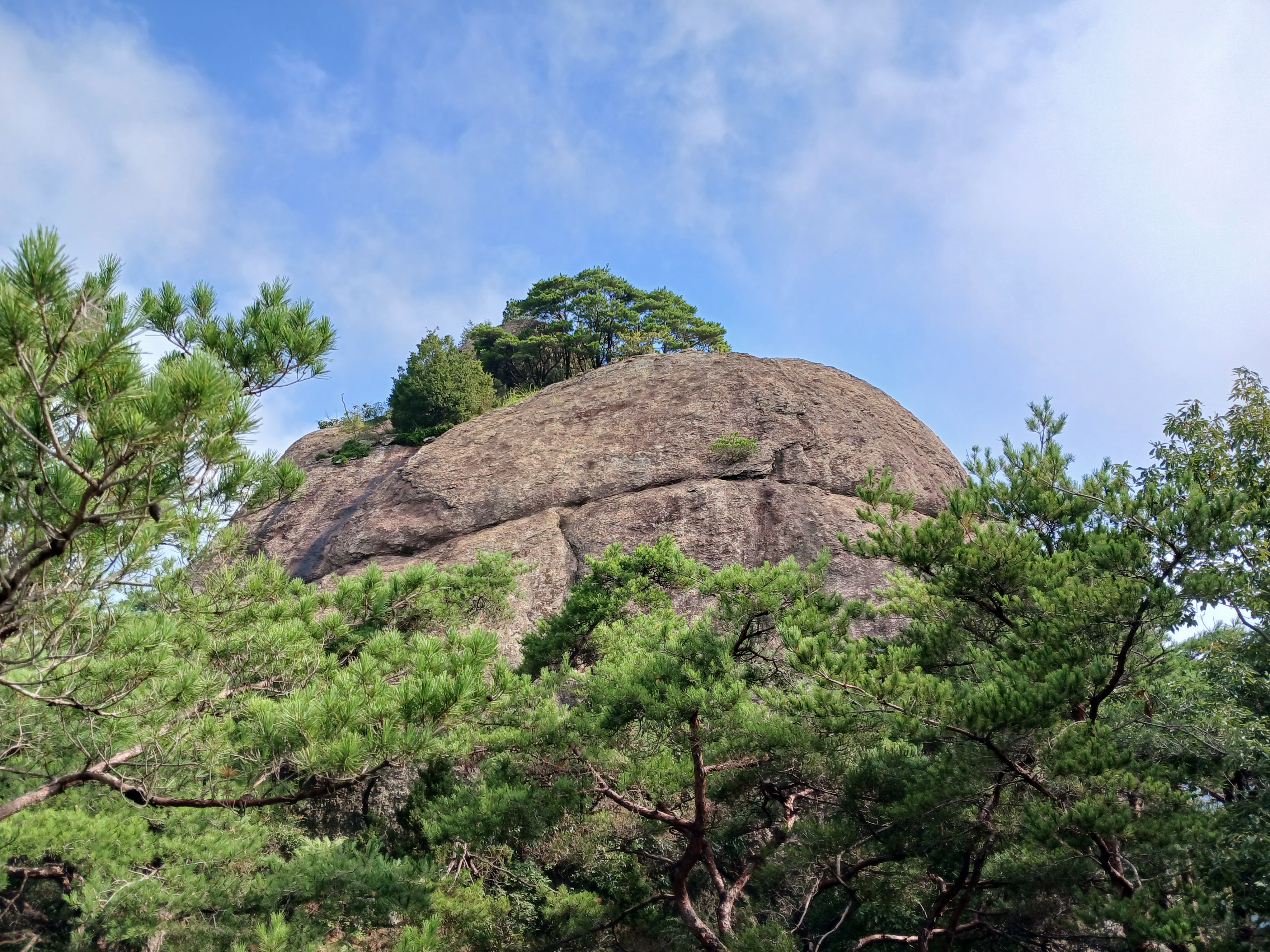 ▶옥새바위 임금의 옥새를 뜻하는 옥새바위는 높이가 8m 암벽으로 솥뚜껑을 엎어 놓은 모양인데 소 바위, 거북 바위로도 불린다.
